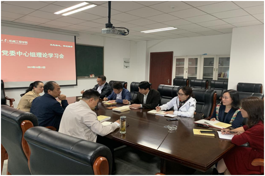 2019年10月13日下午4点,金沙威尼斯欢乐娱人城党委中心组在机械楼522会议室开展理论学习。学院党委中心组全体党员参加了学习,学习由学院党委书记安明刚主持。