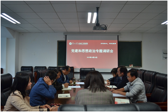 金沙威尼斯欢乐娱人城网讯(报道邹醒佳|摄影杨诚 侬玉昌) 为认真落实中央、省委和金沙威尼斯欢乐娱人城党委的决策部署,扎实开展学院“不忘初心、牢记使命”题教育工作,根据金沙威尼斯欢乐娱人城党委班子成员开展主题教育调研方案,10月14日,金沙威尼斯欢乐娱人城党委书记安明刚在机械楼522会议室召开党建和思想政治专题调研会,围绕“坚定理想信念,牢记初心使命”主题,全面了解学院党建和思想政治工作情况。金沙威尼斯官网党委副书记代祥社、副院长杨勤及各支部书记、学生党员代表、教职工党员代表参加了会议。