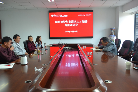本次专题调研重点围绕学院目前学科建设和高层次人才建设情况,包括:机械工程学科各方向学术队伍情况,机械工程学科各方向高水平科研成果情况,国家级项目申报情况,省部级重点实验室建设、创新平台建设情况,本科生、研究生人才培养情况,学院师生群众反映强烈的热点难点问题等。