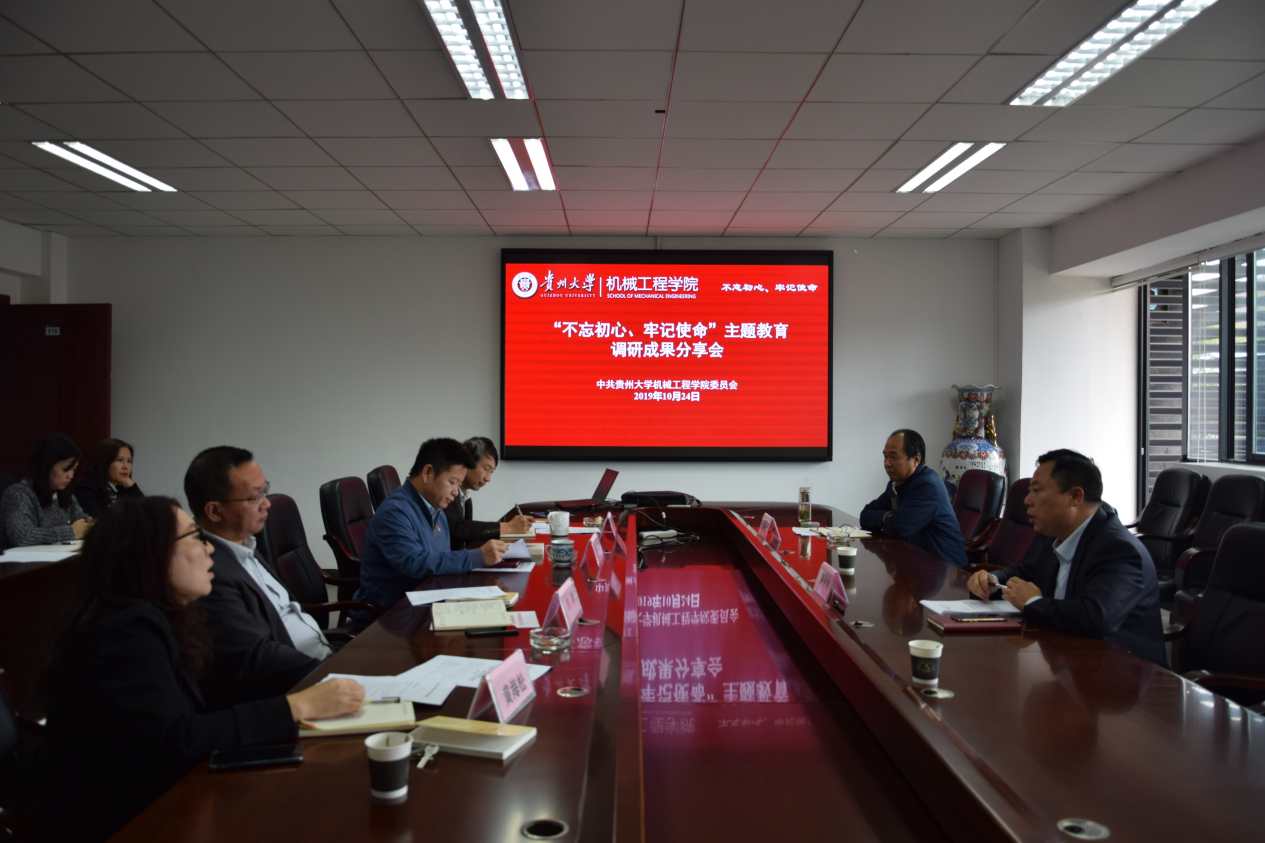 1024金沙威尼斯欢乐娱人城党委理论学习中心组在机械楼518召开“不忘初心、牢记使命”主题教育调研成果交流会学院党委书记安明刚,院长李少波,党委副书记代祥社,副院长杨勤、何锋,教育部重点实验室副主任黄海松等党政领导班子成员参加分享会。会议由安明刚主持。