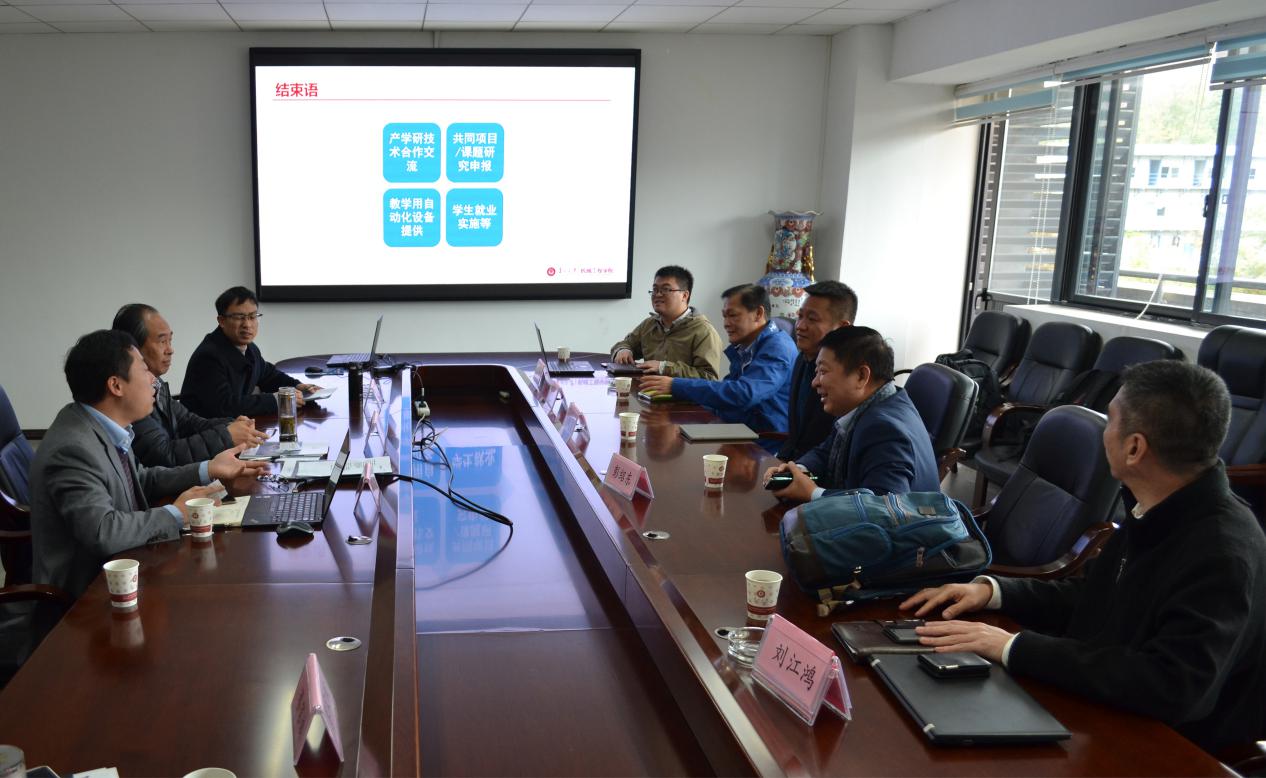 深圳科瑞技术股份有限公司集团首席执行官彭绍东介绍了深圳科瑞的基本情况、产业布局及研发方向;金沙威尼斯欢乐娱人城领导对深圳科瑞技术股份有限公司的到访表示欢迎,金沙威尼斯欢乐娱人城李少波院长、数学与统计学院王锦荣院长分别介绍了学院情况,并就产学研技术合作、共同项目/课题研究申报、教学用自动化设备建设、学生就业实施等方面进行了研讨。彭绍东总经理围绕公司基本概况、科研重点及技术难题、公司规划等方面展开介绍,并表示希望与金沙威尼斯欢乐娱人城加强联系、增强了解、积极对接,争取形成深入的合作关系,实现资源和人才的双向流通。双方针对产学研合作的具体开展和问题初步形成了共识。